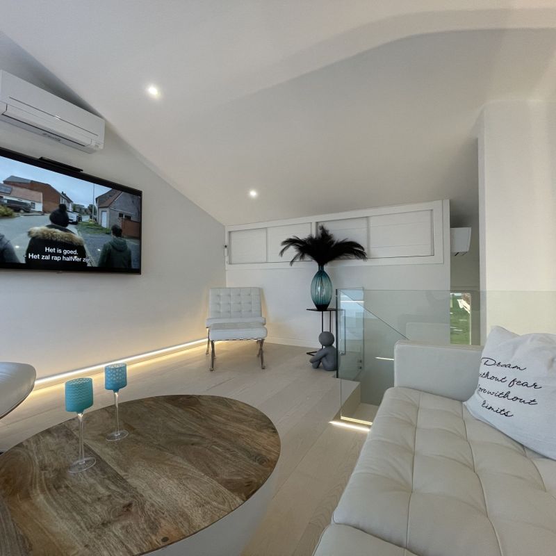 Het absolute hoogtepunt is het royale dakterras. Uitgerust met een stijlvol hoeksalon, een pergola voor de nodige schaduw en een professionele teppanyaki met gezellige aperitiefhoek, is dit dé plek voor lange zomeravonden. Dankzij de directe toegang tot de leefruimte en het panoramische uitzicht over zee vormt dit terras het kloppend hart van het huis.
