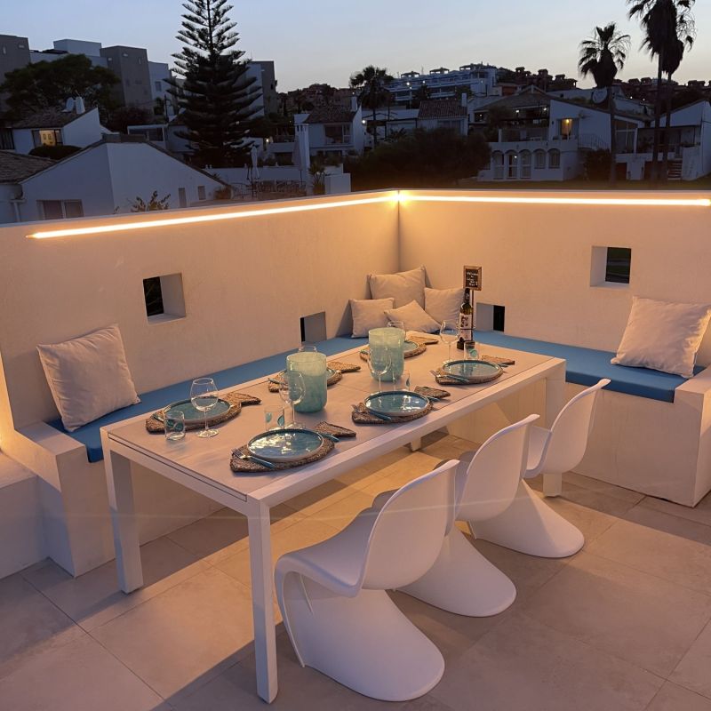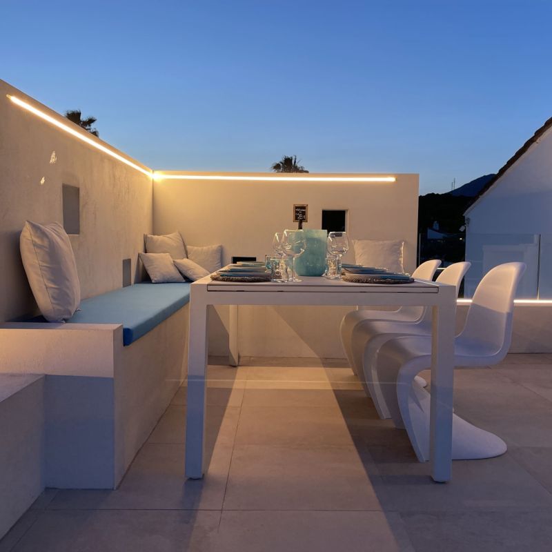 De absolute blikvanger is het 70 m² grote dakterras met 180° panoramisch zeezicht en rechtstreekse toegang tot de keuken en leefruimte. Hier beleef je de ultieme mediterrane droom, op slechts enkele meters van het strand. Dichter bij de zee kan gewoon niet.